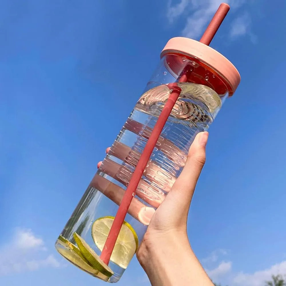 Foldable straw: Its integrated foldable straw makes it easy to prevent dust entering your straw clean and sanitary. Also prevents from unwanted splashing around when shook up.